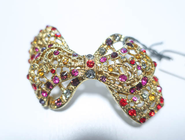 - 《古美術京松》【アクセサリー】 小物 ラインストーン リボンブローチ 上代「10,000円」 R6W-54