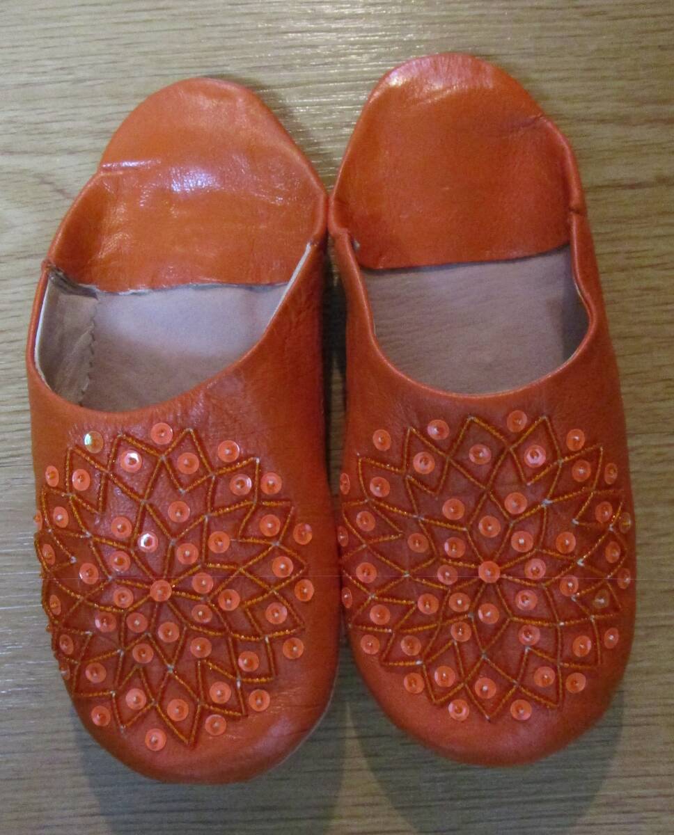 - NEW☆☆バブーシュ羊本革スリッパ/オレンジ&オレンジスパンコール(~25.0cm)