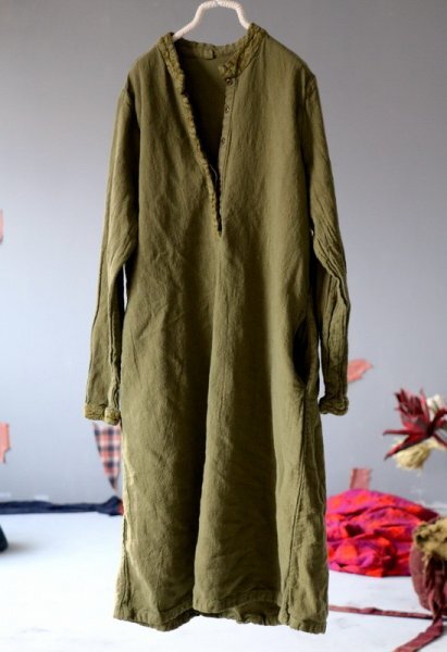 - jm 大きいサイズ ワンピース チュニック 半開け ゆったり 楽な着心地 高質 厚手 RINENリネン 麻100% ダル タフ グリーン ポケット