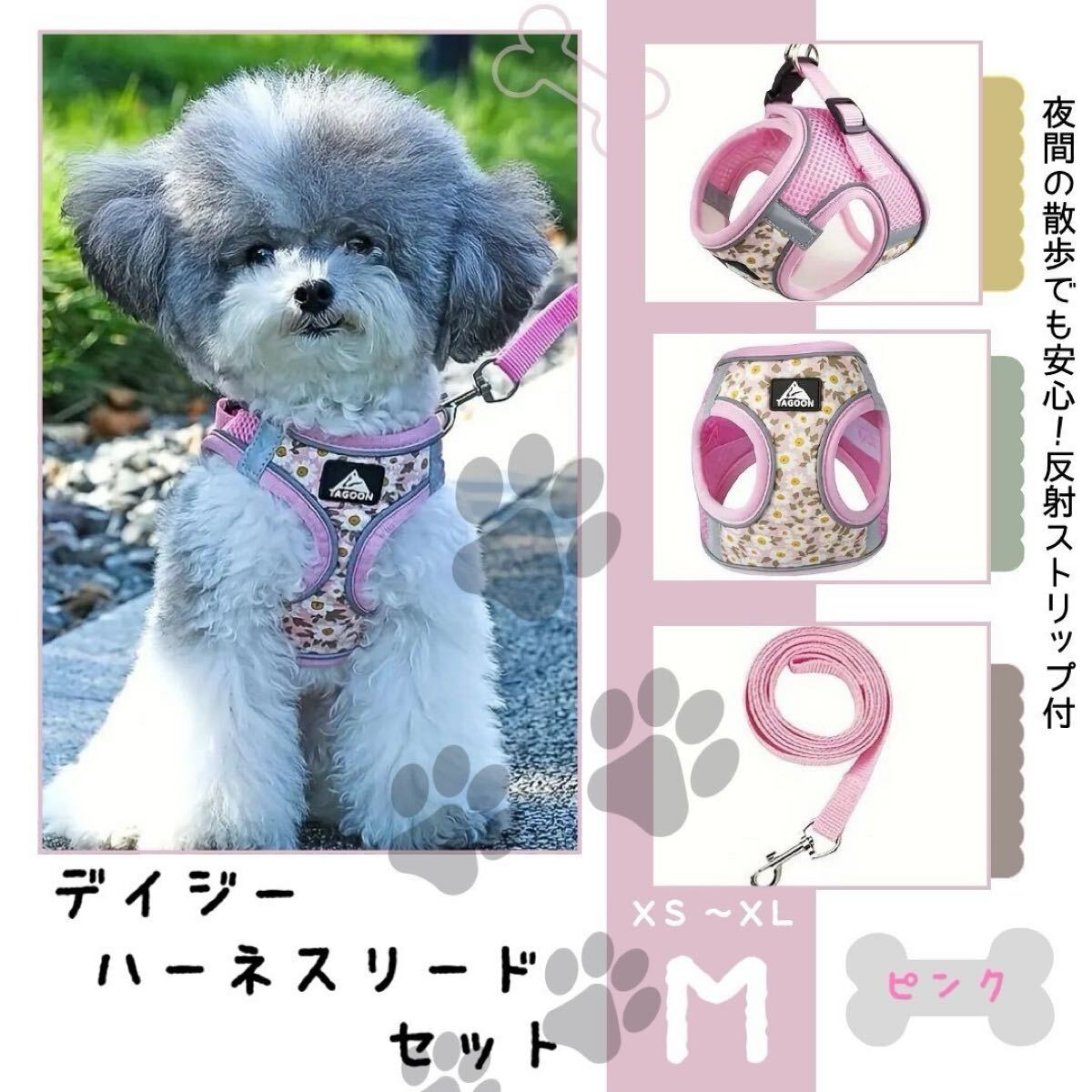 - デイジー ハーネス リード セット ピンク M 散歩 犬用 メッシュ 反射