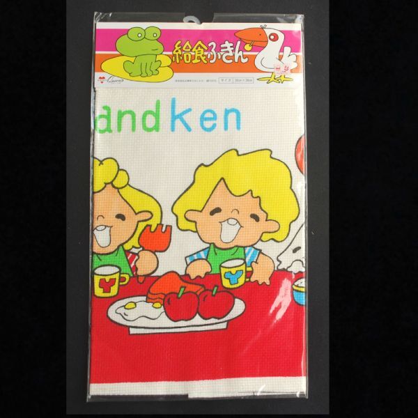 > ●2028● 1970年代 キャラクター給食ふきん ◆ jun and ken ( 小学館プロダクション ) ◆ 未使用置き古し品です。