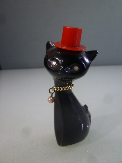 - 黒猫 クロネコ 赤ハット 工芸陶器 昭和レトロ 土産 アンティーク 中古