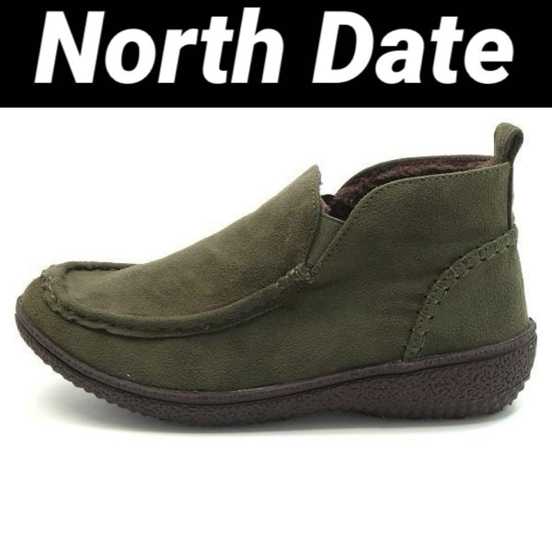 > ノースデート レディース ワラビーブーツ 23cm カーキ★新品 送料無料★スリッポン 防滑 防寒 撥水 ブーティー 冬 靴 雪 女性 5679611