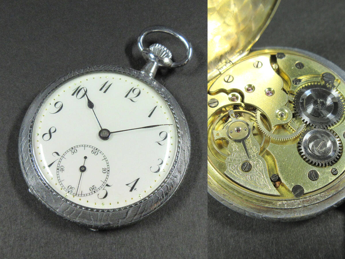 - ルモントワール アンティーク 45mm オープンフェイス ホワイトエナメル文字盤 合金ケース 手巻 懐中時計