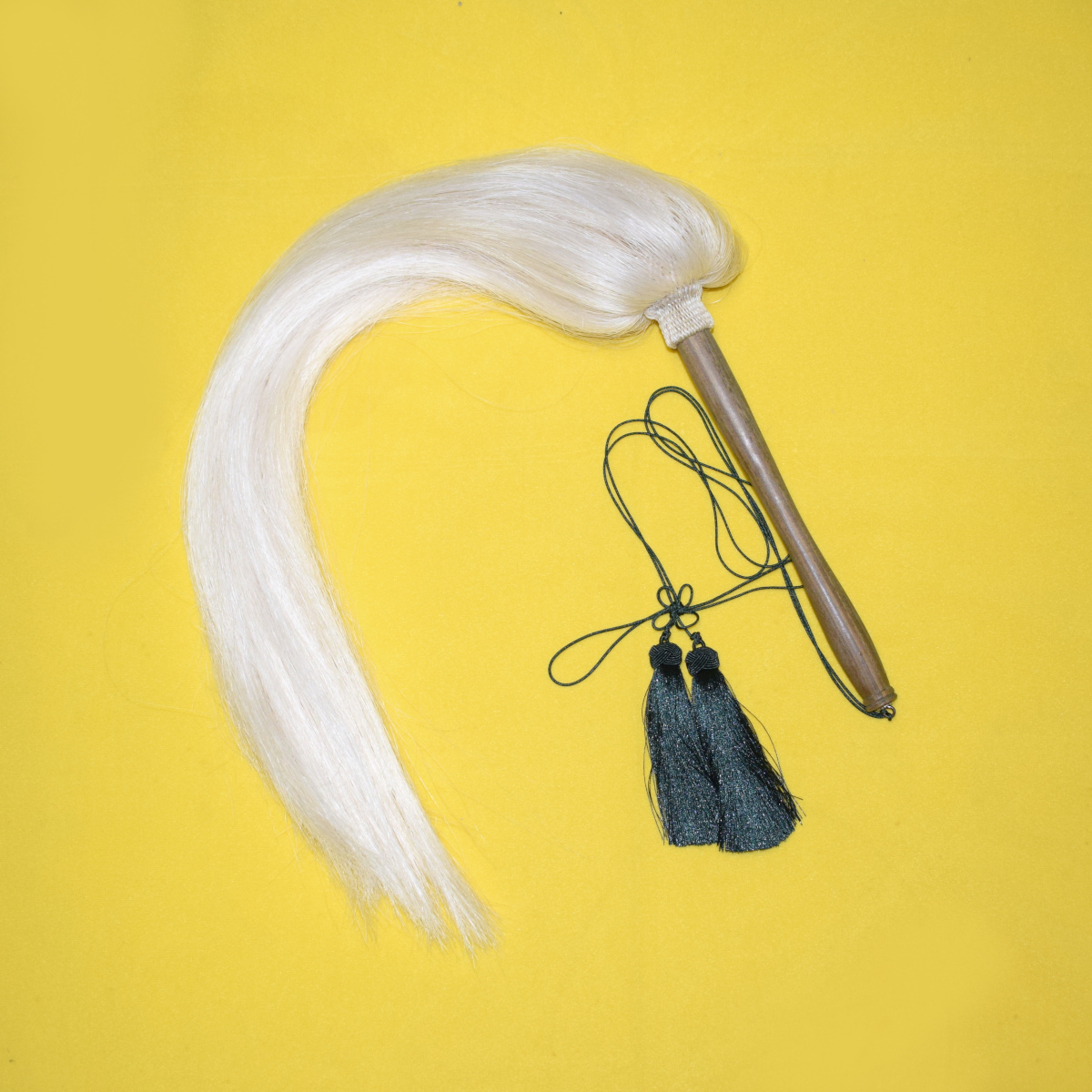 - 払子 拂子 正絹房付 馬毛 緑檀 (当店オリジナル 方丈様監修) 麈尾 寺院 仏具 仏教 (房色:緑系) 【w-2-3】