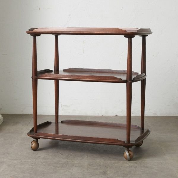 > IZ85651F★Ercol トロリー キッチンワゴン アーコール 英国 ヴィンテージ 3段 サイドテーブル キャスター エルム ニレ 無垢材 ナチュラル