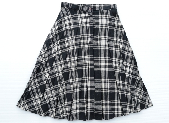 - ◆ 70's-80's UNKNOWN ウール ロングスカート プリーツ W28 白黒チェック/ビンテージ オールド レトロ アメリカ古着 レディース USA製