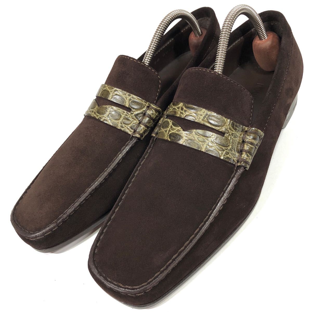 > 未使用品【ルイヴィトン】基準内 LOUIS VUITTON 靴 25cm ロゴモチーフ コインローファー スリッポン シューズ スエード メンズ 伊製 5 1/2