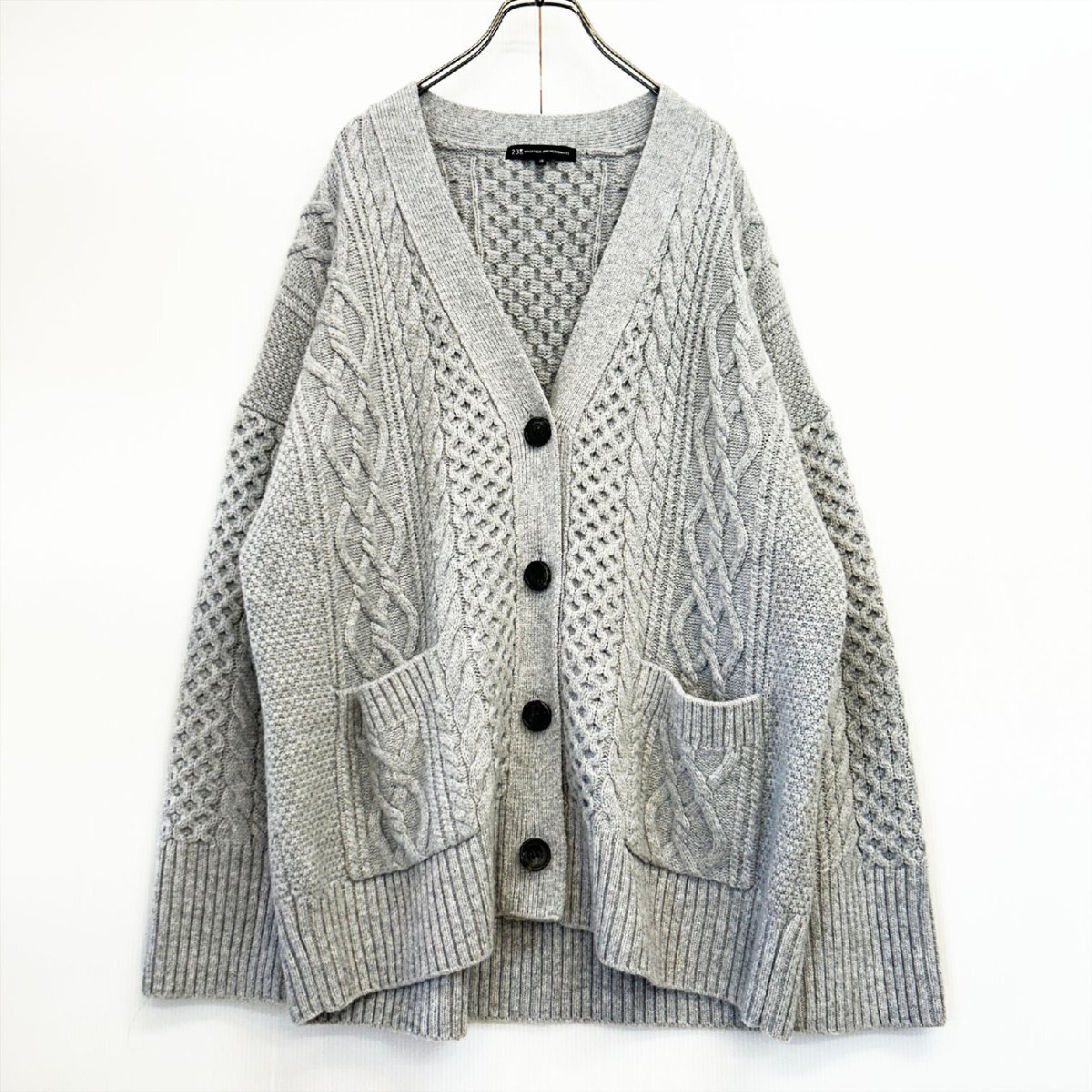 - 23区 【杏さん着用/洗える】 ウール カシミヤ アラン パターン ニット カーディガン ケーブル グレー Js2-23