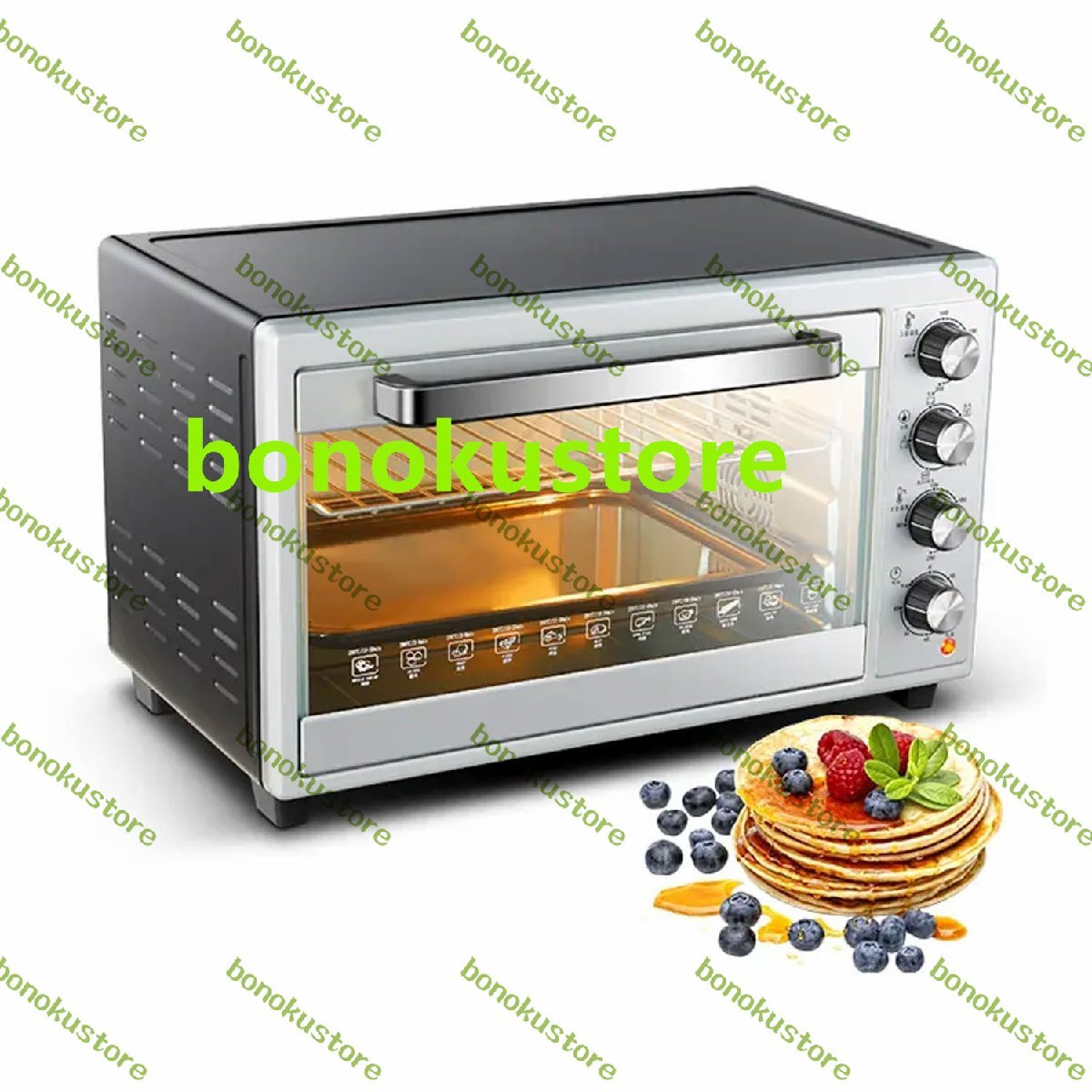 - デスクトップ60L商業ピザオーブン 1800W電気ステンレス鋼ベーキングオーブン 360°回転グリルフォーク付き 高温耐性照明付き