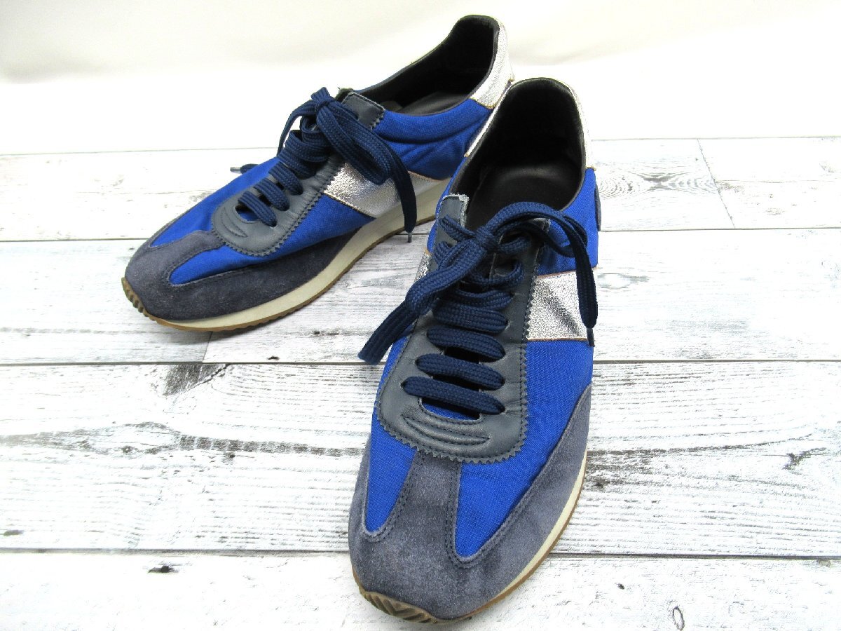 > ☆☆【B送900円】1035 Saint Laurent サンローラン ローカットスニーカー スエード×ナイロン ブルー シルバー メンズ 42