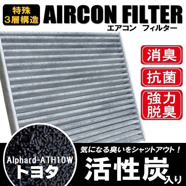 > エアコンフィルター 交換用 TOYOTA トヨタ アルファード ATH10W 対応 消臭 抗菌 活性炭入り 取り換え 車内 純正品同等 新品 未使用