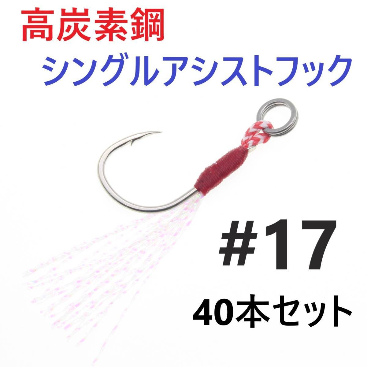 - 【送料150円】高炭素鋼 シングル アシストフック #17 40本セット ジギング メタルジグ 伊勢尼針 ティンセル スプリットリング付き