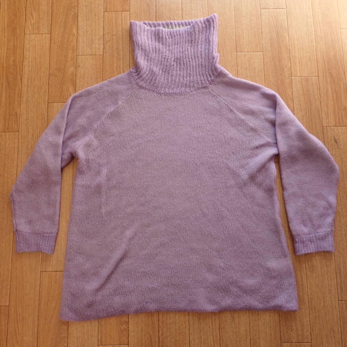 > @@ラスト1 未使用 麻布プロバドール 軽ふわ リバーシブル ニット セーター ラグラン 長袖 ラベンダー グレー L QVC