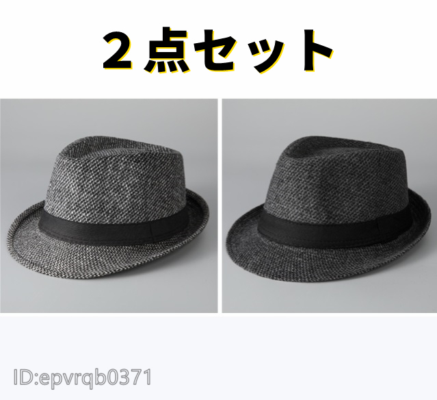 > 2点セット※ソフト帽 新品 メンズキャップ ジャズハット 紳士 帽子 中折れハット フリーサイズ 56-58センチ ダークグレー/グレー