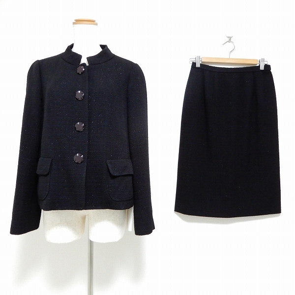 - #anc レリアン Leilian スカートスーツ セットアップ ツーピース 11 黒 スタンドカラー ラメ レディース [809437]