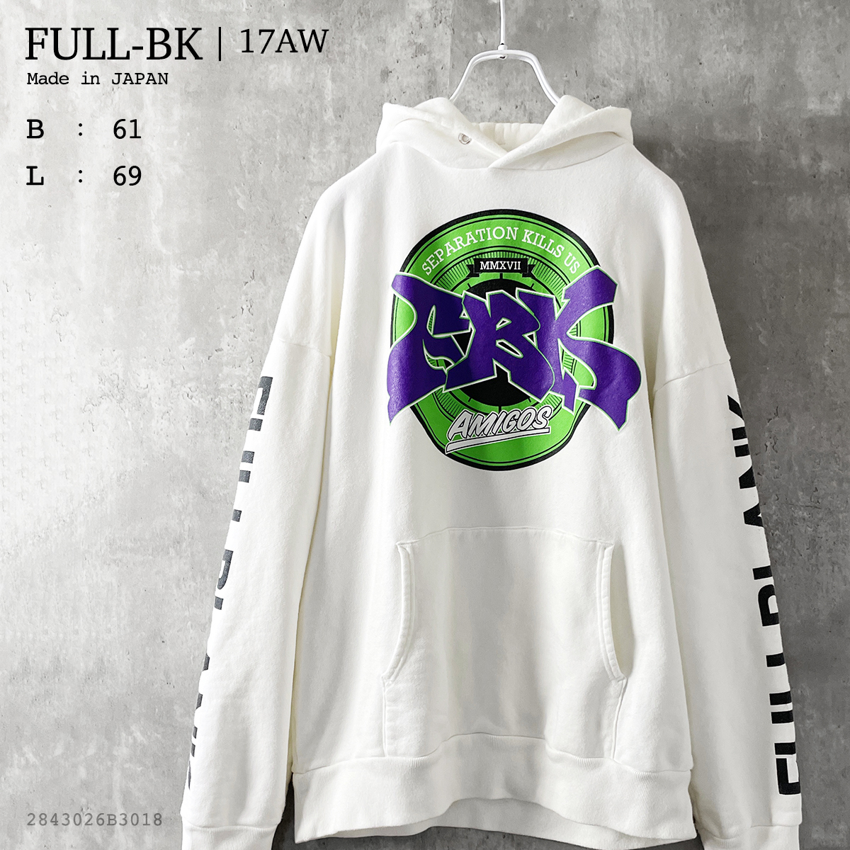 > FULL-BK 日本製 オーバーサイズ 厚手 プリント プルオーバー パーカー 白 ホワイト 綿 100% ストリート タギング フルビーケー XL XXL 2XL
