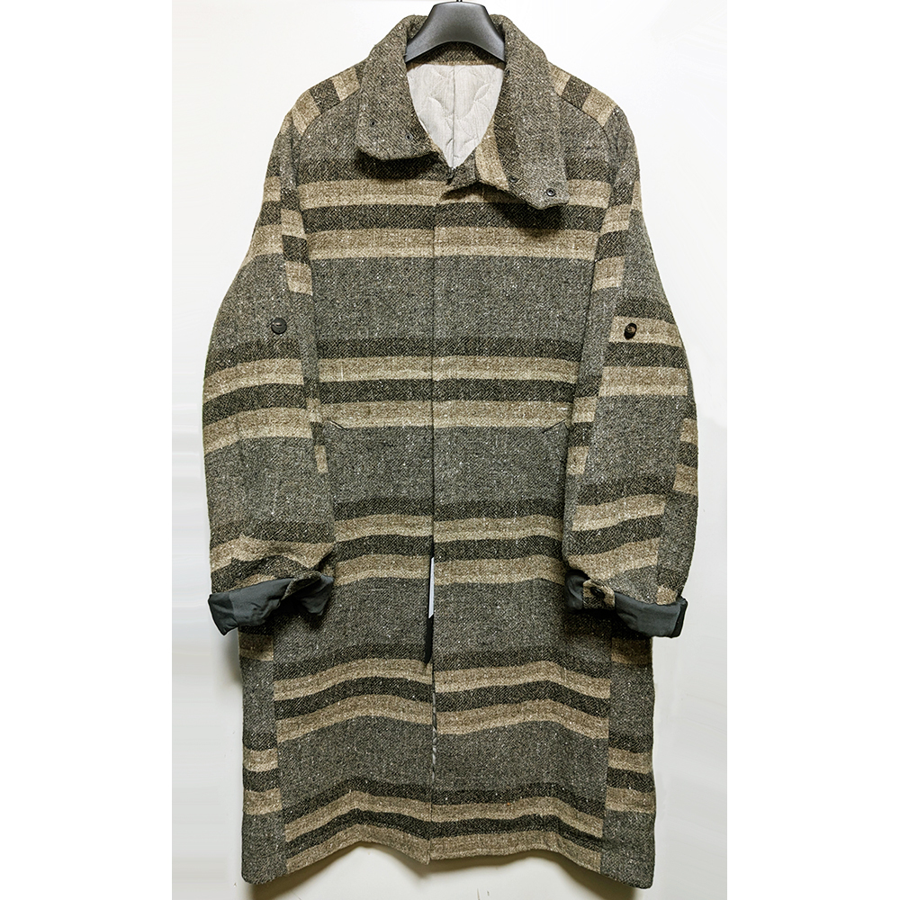 - DEVOA 22AW ストライプウールハイネックコート 3 新品 定価132,000円 シルク 中綿入り デヴォア