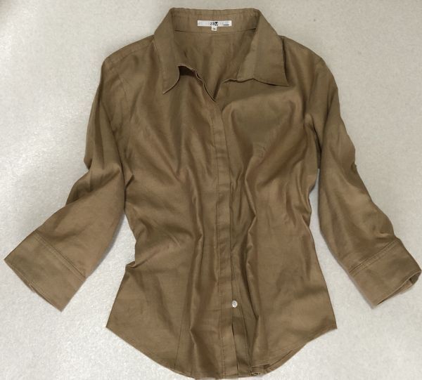 - $〜リピーター様特典割引有り◎美品部類◎ベージュブラウン系◎23区◎オープンカラー七分丈シャツ