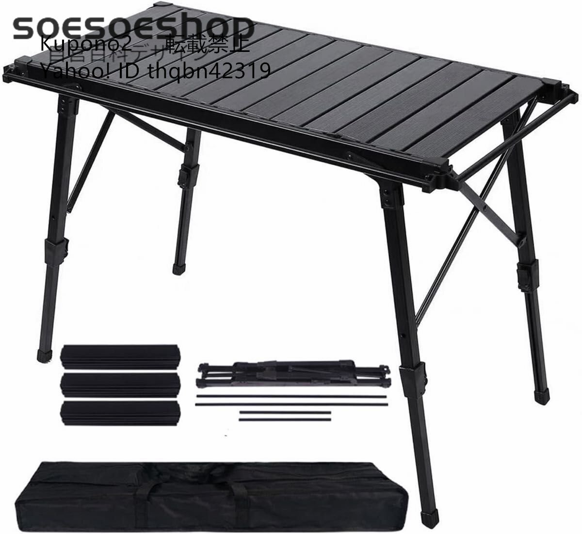 - 新品推薦★アウトドアテーブル 折り畳み 組立不要 高さ無段階調節可 吊り下げ用サイドレール付 アルミ合金 軽量