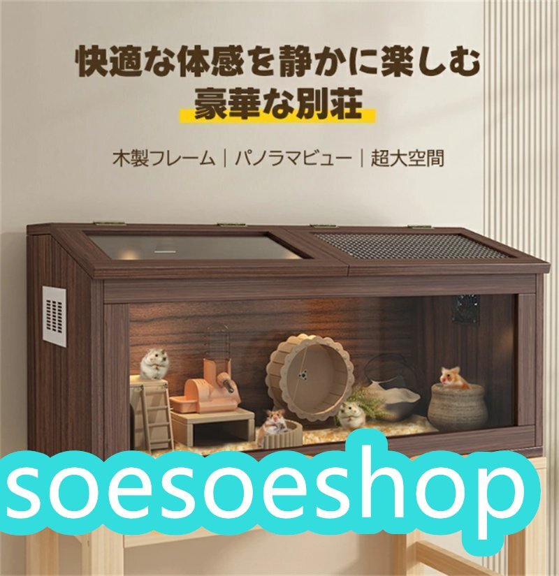 > 新品 ハムスター ケージ 飼育ケージ 給餌ケージ 大きめ モルモット リス ペット 小動物 透明 通気 脱出防止 木製フレーム 80*40*38cm