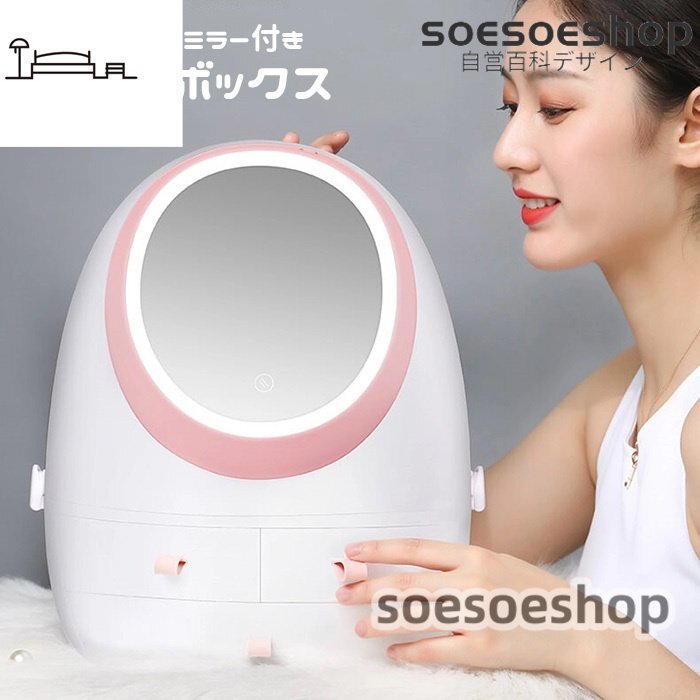 - メイクボックス コスメ収納 化粧品 収納 コスメボックス アクセサリーボックス LEDライト 鏡付き