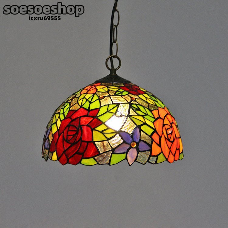 > ◆新品◆芸術品◆ステンドランプ ペンダントライト ステンドグラス 照明 ティファニー 花柄 通路用ランプ ベッドルーム用 室内装飾