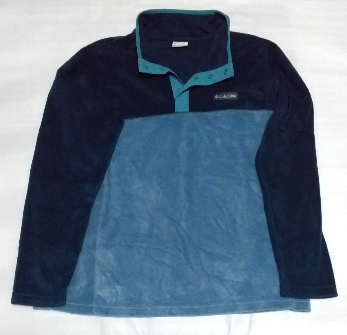 > ☆Columbia.com サイズXL フリース4つボタン水色ネイビー紺スポーツ洗濯済アウトドア ウェア カンパニー ファッション ブランド コロンビア