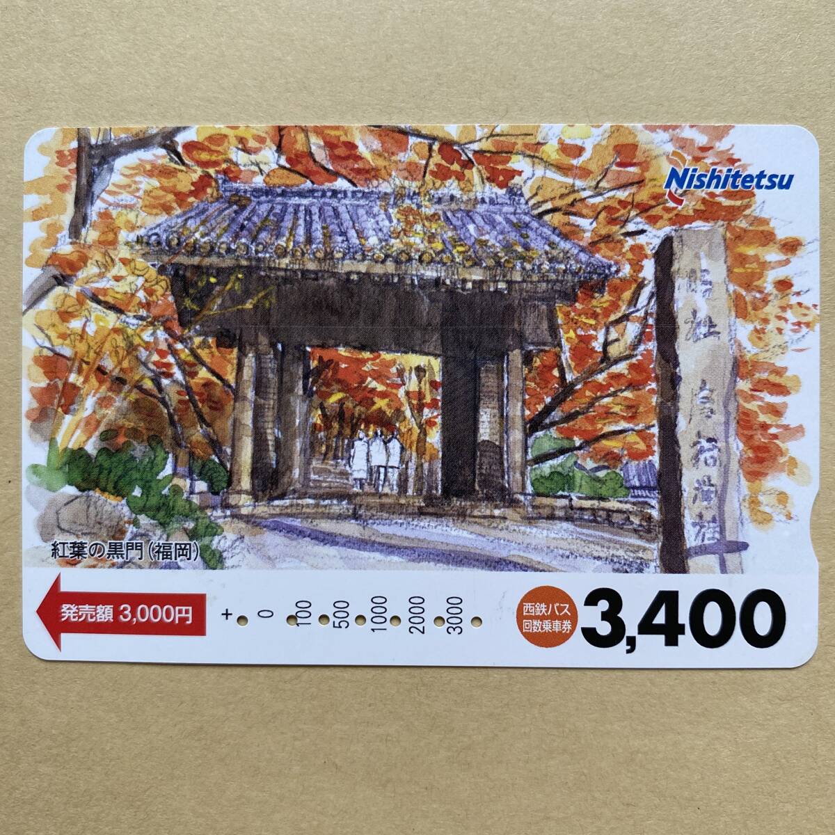 - 【使用済】 バスカード 西鉄バス 紅葉の黒門(福岡)