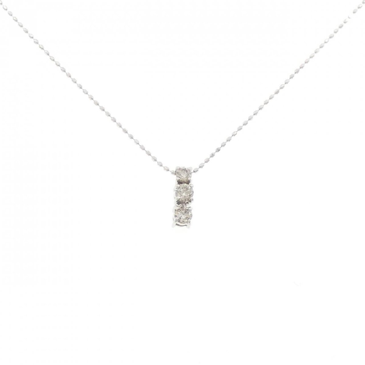- K18WG スリーストーン ダイヤモンド ネックレス 0.30CT