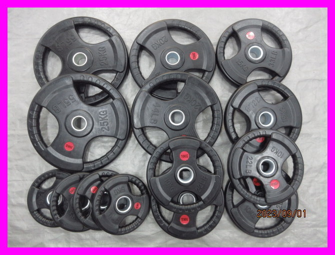 - ★新品★合計180kg 14枚 ジム パーソナルトレーニング オリンピックシャフト ウエイトプレート ラバー ウエイト プレート 50mm