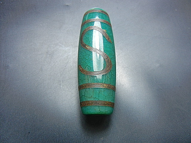 - ★西蔵至純天珠★XT9423 緑砂龍紋 S金銭釣 上級 39mm入手難