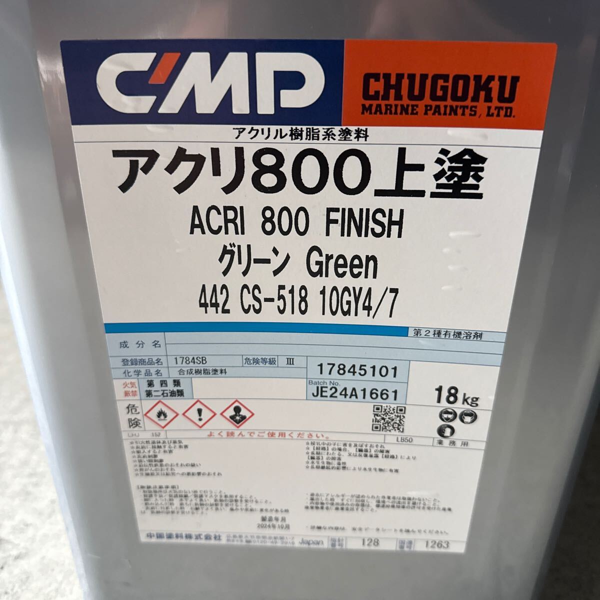 - 中国塗料 アクリ800 上塗 グリーン 442 アクリル系塗料 緑 10GY4/7 18kg 新品未開封 送料無料