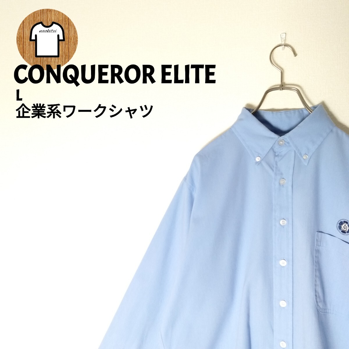 - CONQUEROR ELITE ワークシャツ L アメリカ製 刺繍ロゴ A996