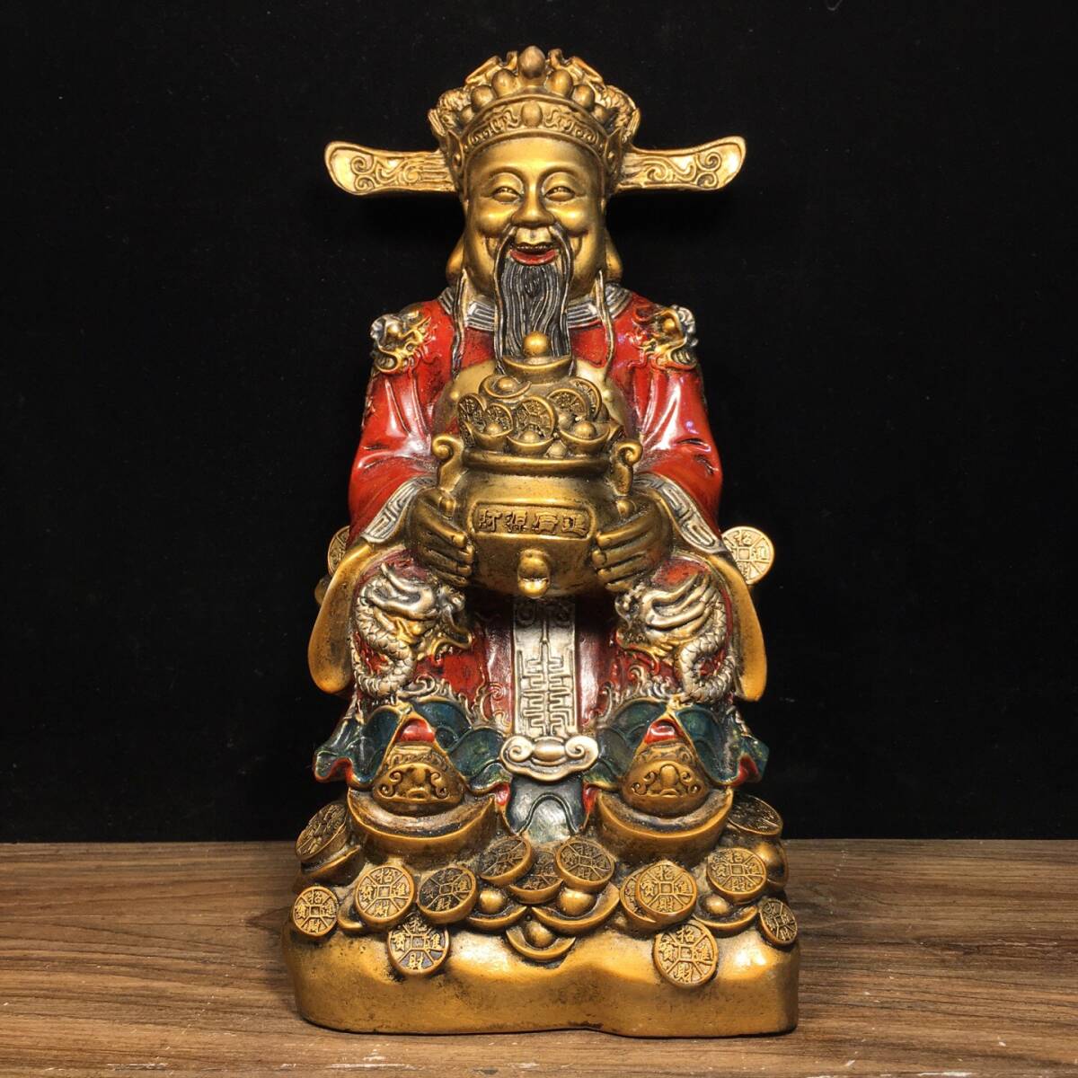 - 【仁】『銅製・金鍍・彩繪・財神像・仏教古美術・供養品』極細工 古賞物 中国古玩 古美術 古美味