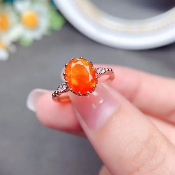 925シルバーファイヤーオパールリング、ファインジュエリー、誕生石ギフト、オレンジ