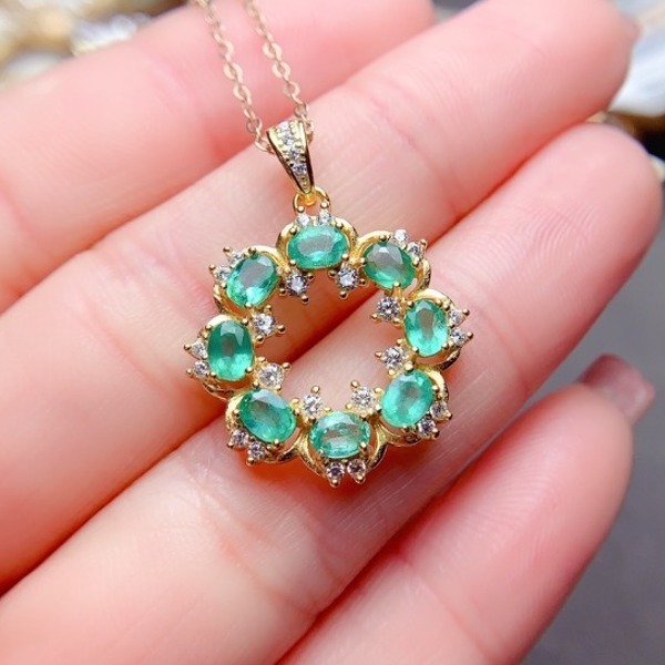 女性用925スターリングシルバーのナチュラルエメラルドペンダント、チャーム