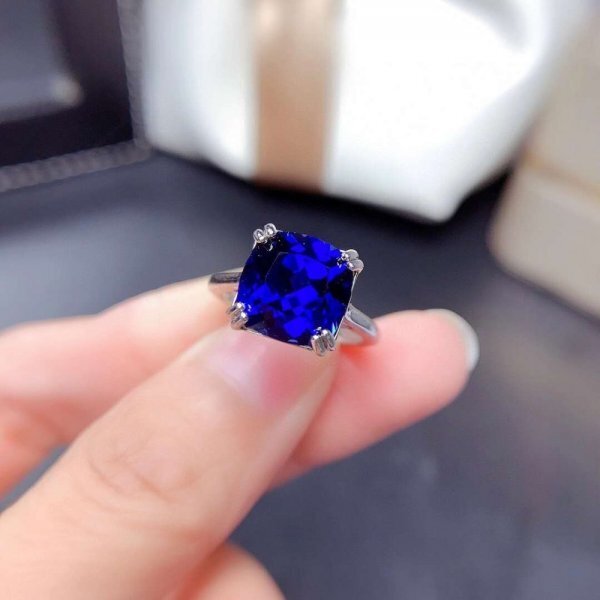 女性のためのナチュラルサファイアリング、10×10mm、925スターリングシルバー、高級ファッション