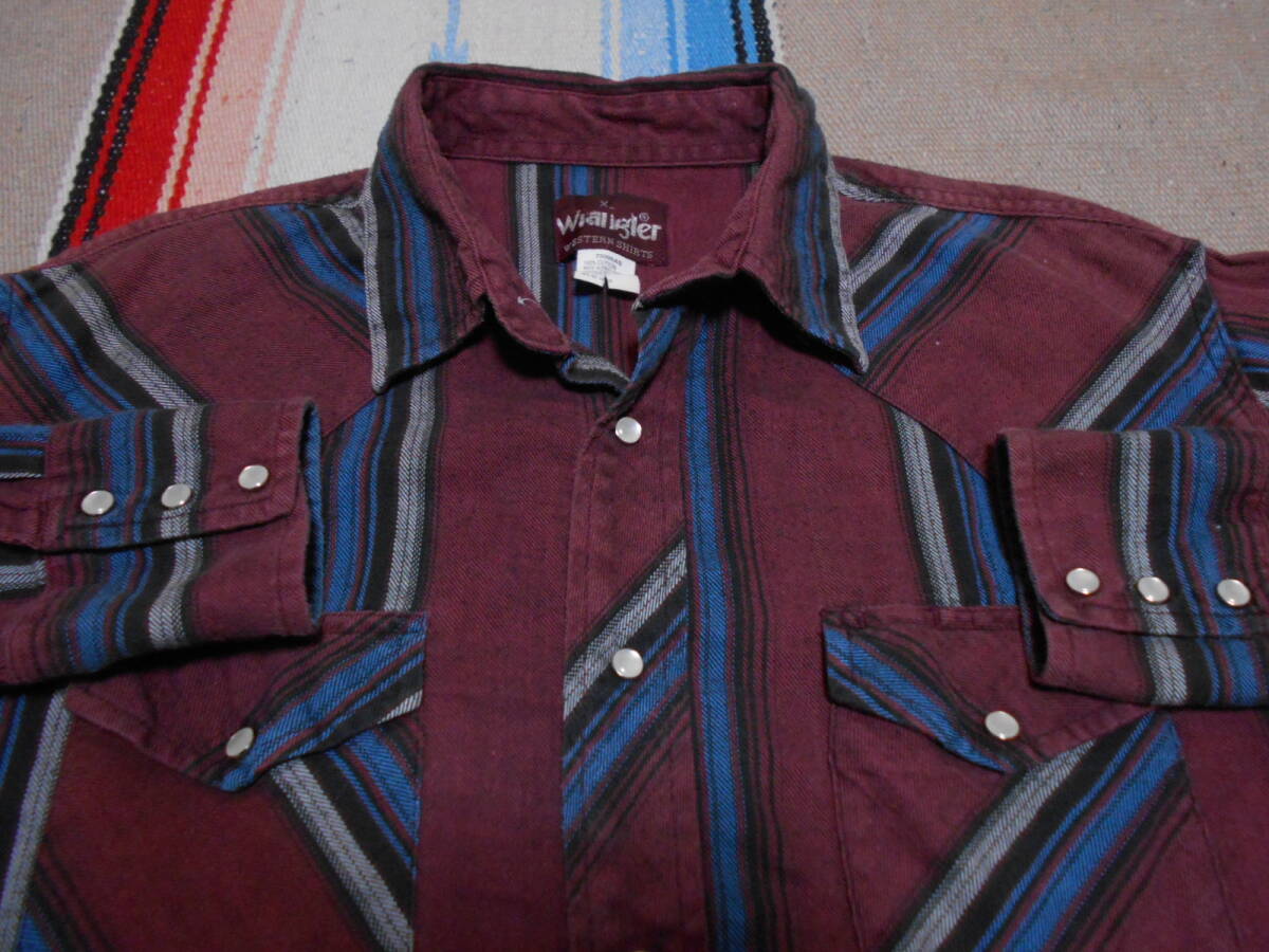 - 1980年代製 WRANGLER USA COWBOY WESTERN SHIRTS ラングラー ウェスタンシャツ ネルシャツ ビンテージ カウボーイ ロデオ乗馬車 西部劇