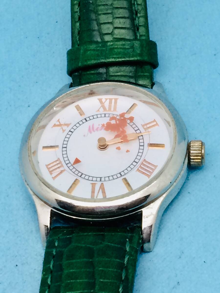> (d12)ディズニー(*'▽')Disney・ミニー(電池交換済み)シルバー・ユニセックス腕時計USED(送料全国一律185円)コレクションに。