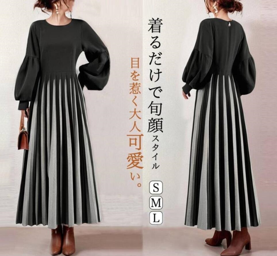 - 上品 長袖 配色 ボーダー柄 切り替え ロング カジュアルワンピース マキシワンピース オフィス 体型カバー きれいめ ロングワンピース