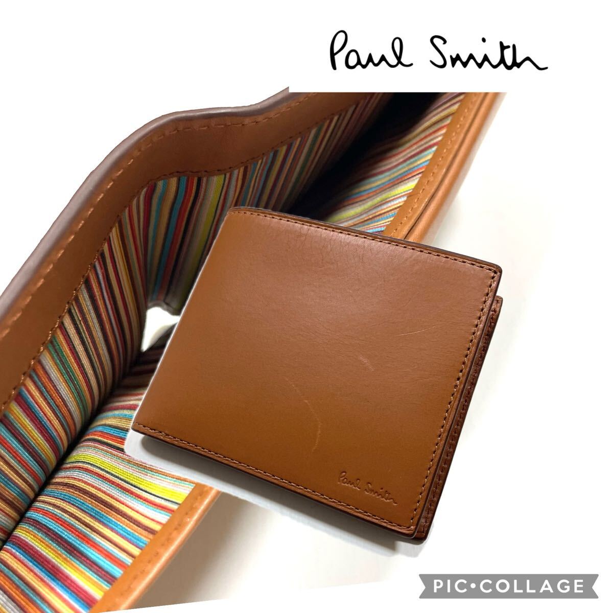 - 未使用 ポールスミス 財布 二つ折り 財布 ベジタンストライプトリム キャメル 63375/502EI/A