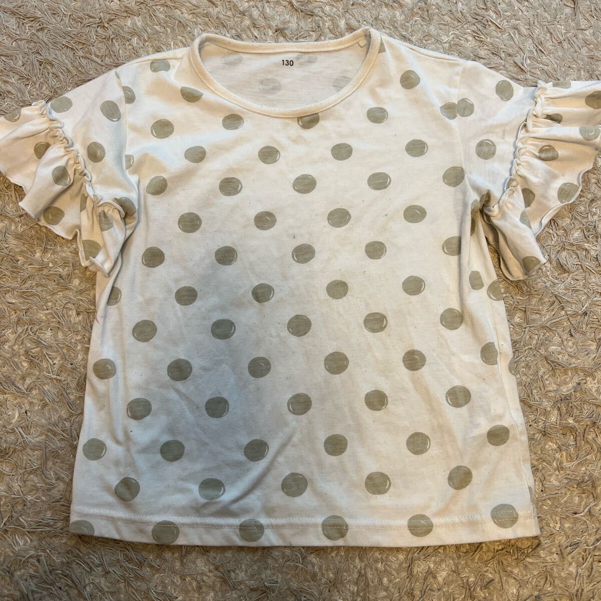 - イオンTOPVALU ドット柄フリル袖Tシャツ 130
