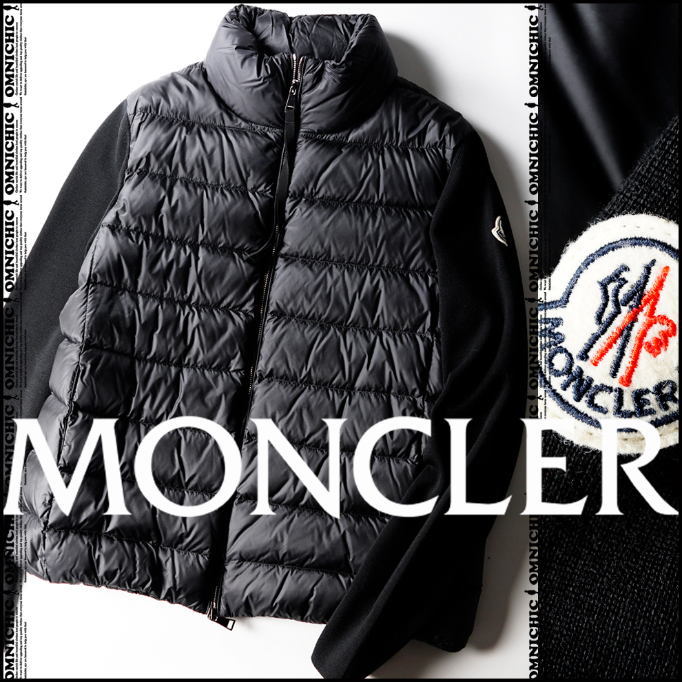 - 国内正規品■新品/エレガントさが段違い!【MONCLER】モンクレール/ウールニット袖/艶めくジップブラックショートダウンニットジャケット/L
