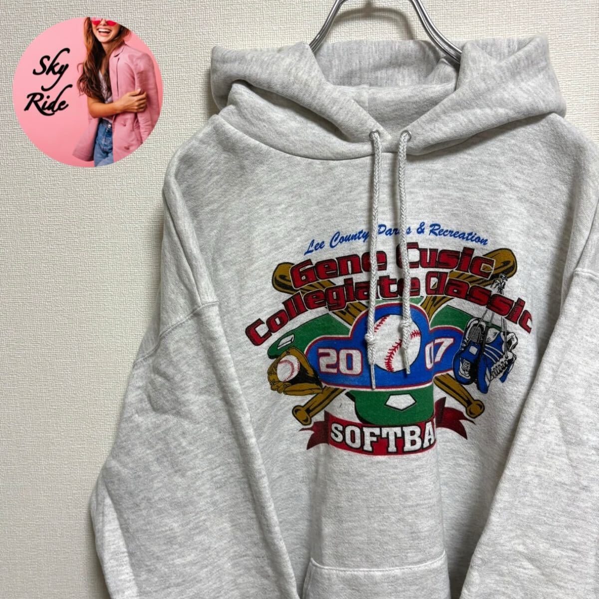 - Lee リー メンズ ヴィンテージ ソフトボール ビッグプリント プルオーバーパーカー フーディー グレー L 古着 #UY0007