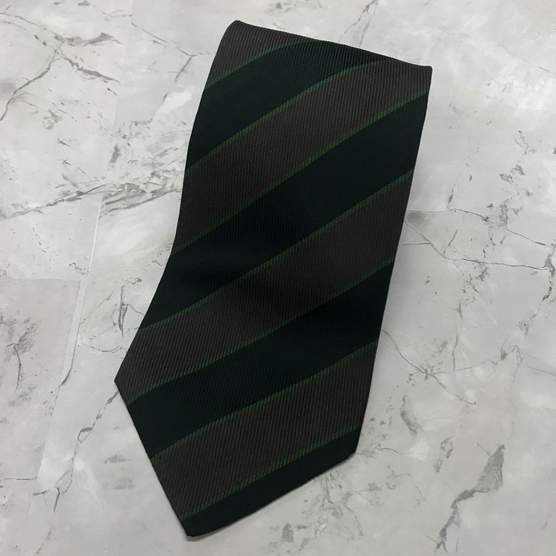 - ジョルジオアルマーニ ネクタイ 緑×灰色 ダブルストライプ 絹【n498】