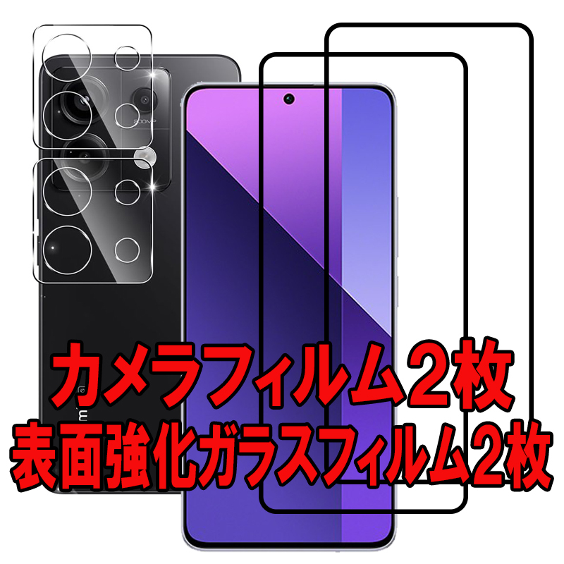 - 2セット=4枚 黒 Redmi Note 13 Pro 5G カメラ ガラス フィルム 画面 保護 XIG05 レッドミ カバー 頑丈 シール シート Camera Glass Film