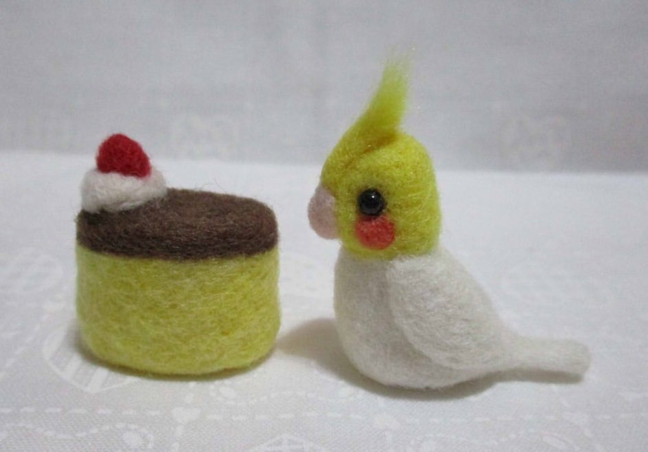 - * ハンドメイド 羊毛フェルト オカメインコ ぬいぐるみ 置物 ミニチュア フィギュア 鳥 1/6ドール リーメント ドール用 ペット 野鳥