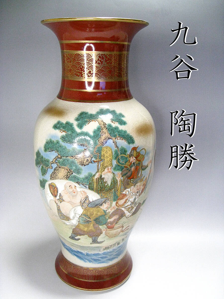 - #九谷 #名工 #陶勝 #色絵金彩 #七福神絵付花瓶 #壷 #古美術品