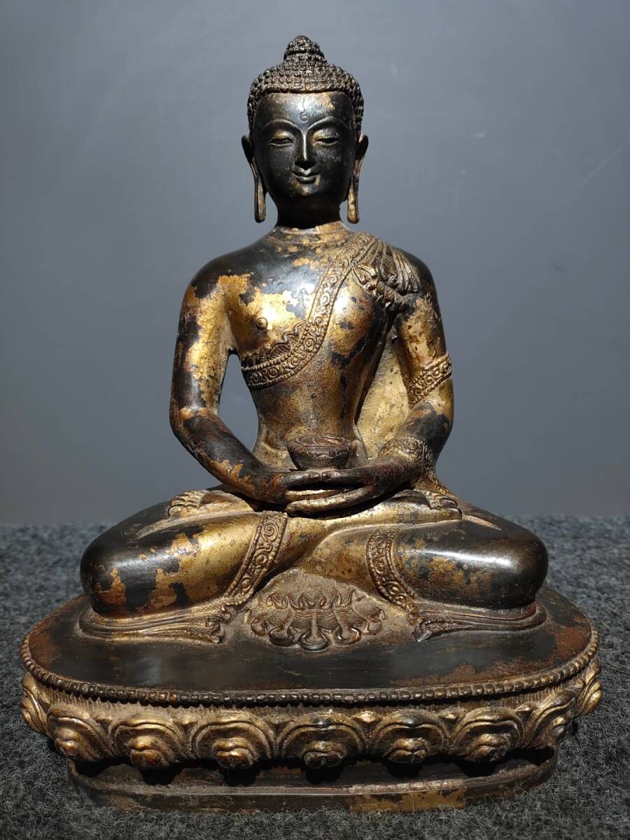 - 【超珍館蔵】銅製 泥金 朱砂 釋迦牟尼像 置物 古賞物 古美術品 稀少珍蔵品